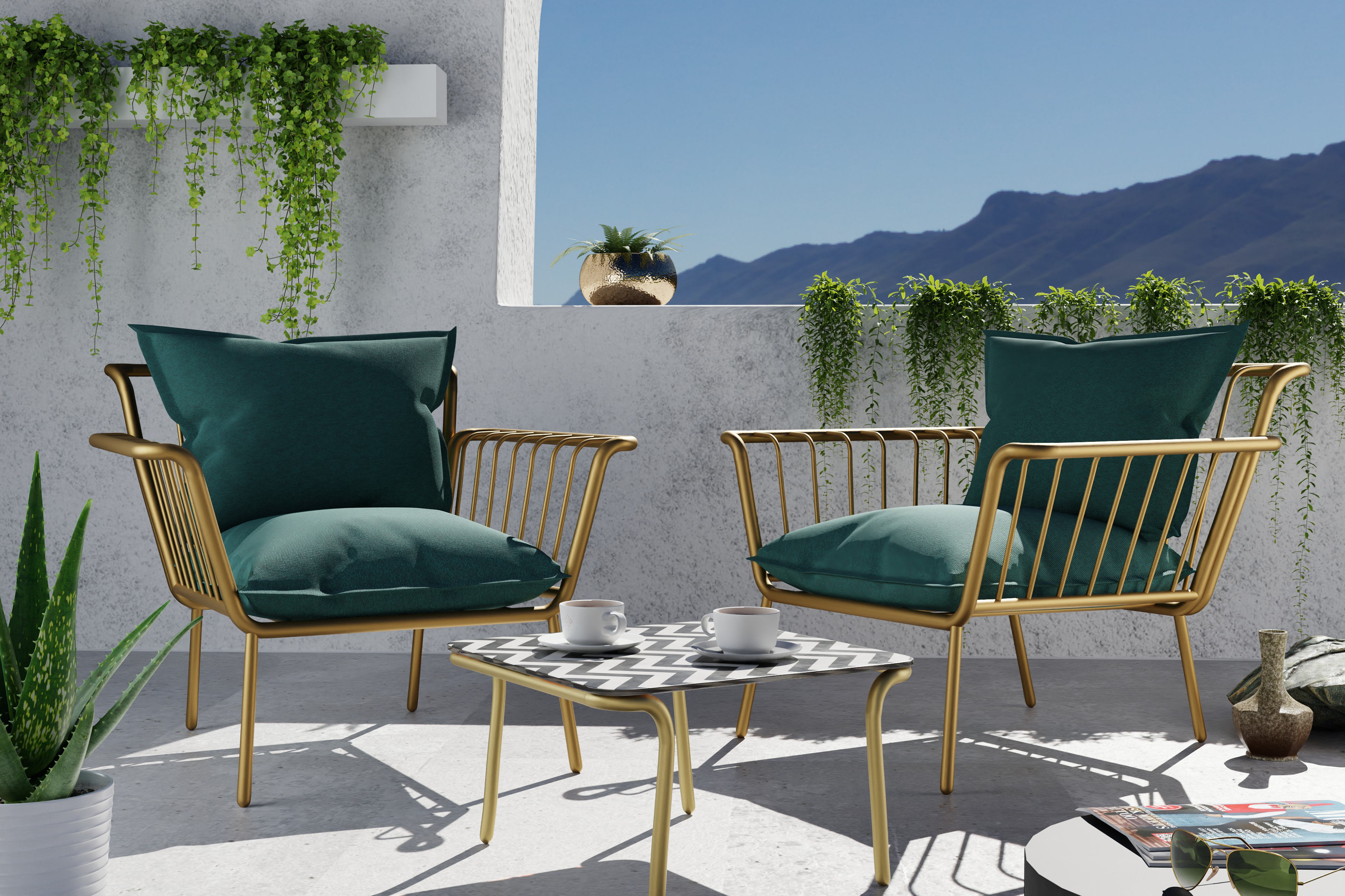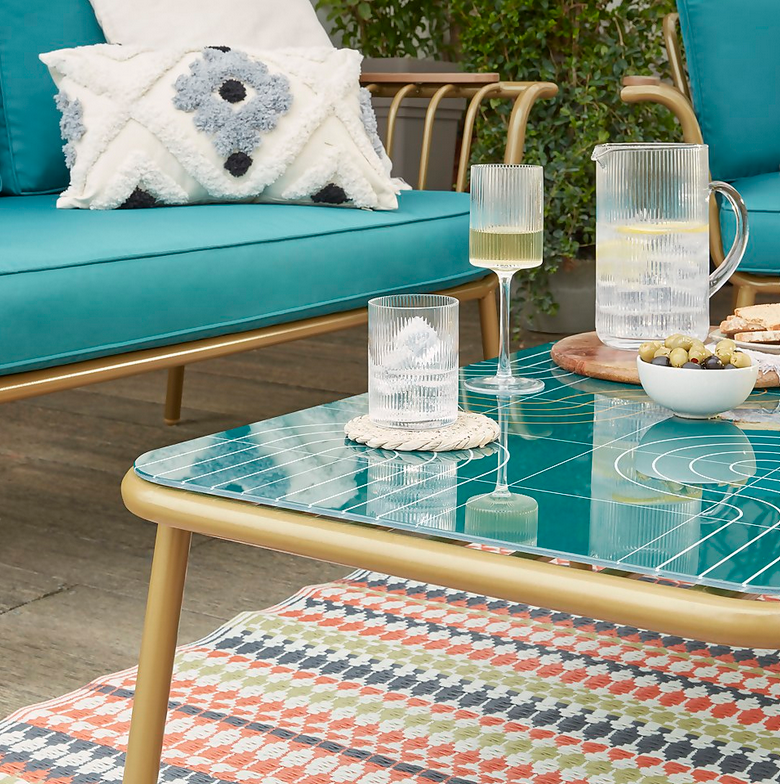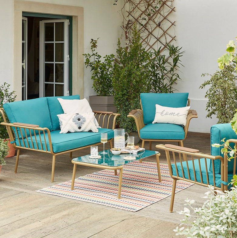 Designed as part of Homebase's SS23 outdoor range, the Casa corner sofa, bistro and coffee sets offer a rich, luxe combination of teal tones and shimmering gold finishes, with a ceramic table topped to tie the range together.