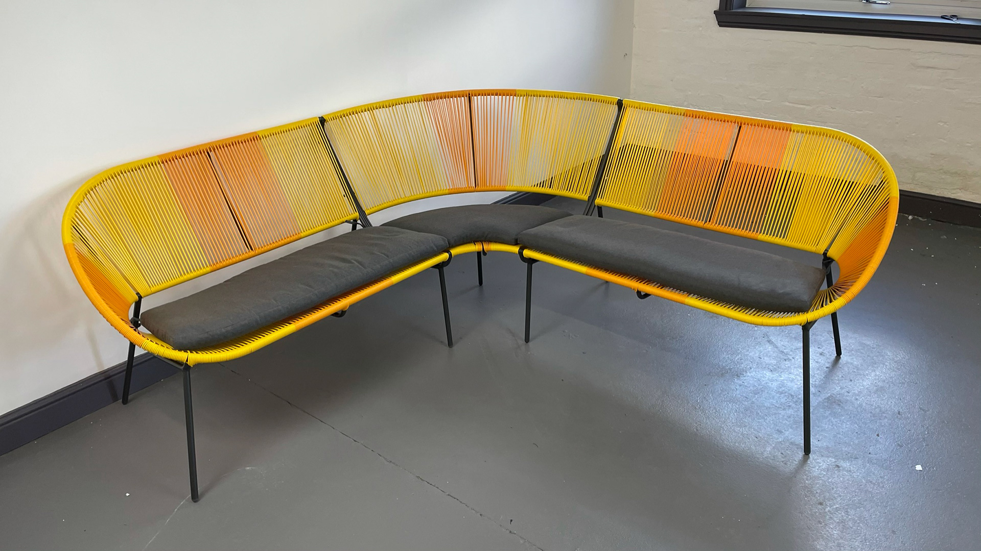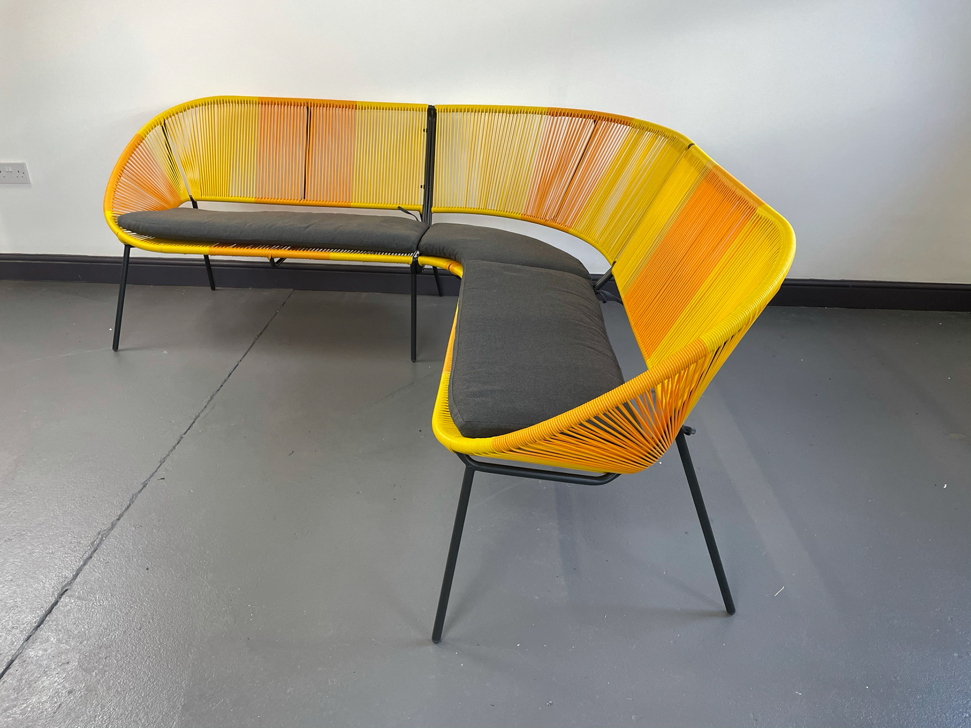 A concept for SS22 to expand upon a client's successful woven furniture range. My concept here was to create the lowest entry level priced corner sofa we could, while still providing customers with fun, vibrant and comfortable summer furniture. I think the idea here is really promising, as the simple frames and minimal cushions will keep costs extremely competitive compared to most corner sofa offerings.